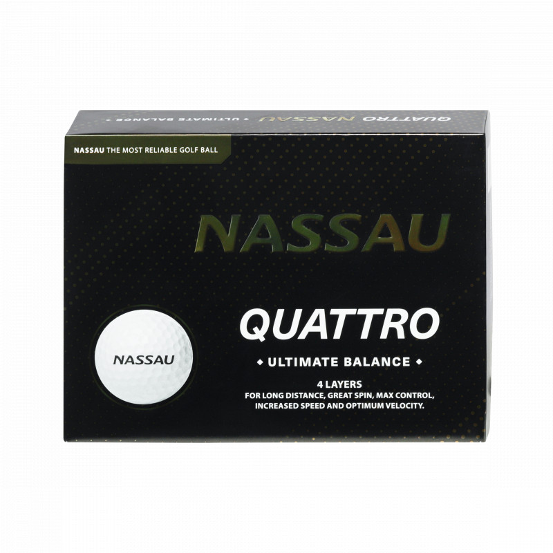 De 4-piece Quattro kan zich meten met de premium golfballen op de markt.* De dubbele kern staat garant voor veel snelheid en weinig spin met de driver – hét recept voor maximale afstand van de tee. De elastische mantel hieromheen biedt zowel snelheid als gevoel, terwijl de zachte cover van thermoplastic urethaan de spin voor zijn rekening neemt. Het resultaat: een consistente balvlucht, controle met de korte ijzers en gevoel rond de green. Het complete pakket om te kunnen presteren bij alle facetten van het spel. Dé topbal voor spelers die alleen genoegen nemen met het allerbeste.